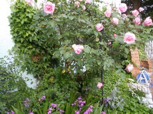 最近、よく雨が降り、風も強い日が多いので・・ せっかく咲いた薔薇たちにとっては 堪ったものじゃない~ お花たちも・・ ニャンコたちも、お天気の良い日が大好きで、 立水栓のデザインアーチの上で 日向ぼっこをするマリン。 でも・・ 今日のマリンはご機…